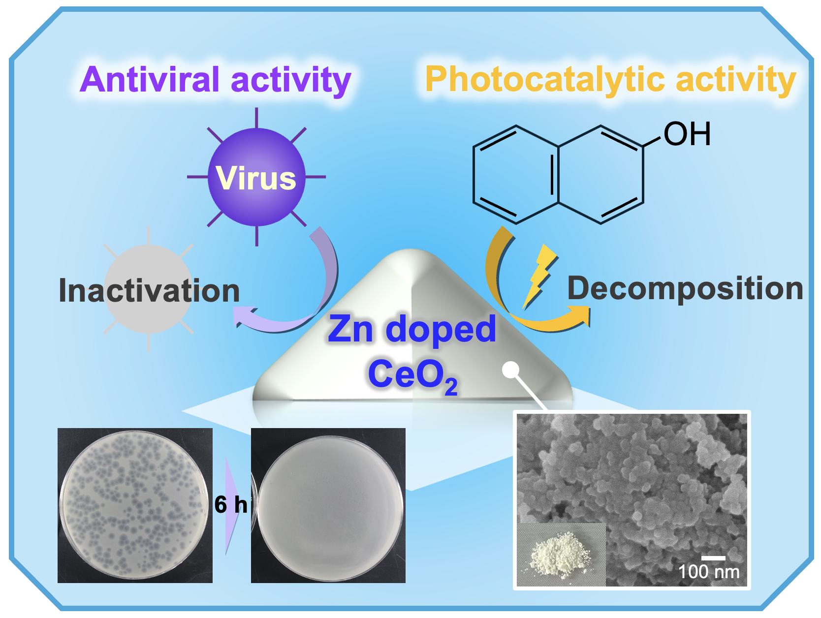 Preparation and evaluation of antiviral activity of Zn-doped CeO2 under dark and visible-light irradiation